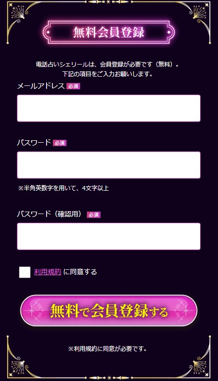 こちらからシェリールに行き、下へスクロールし、登録フォームに入力